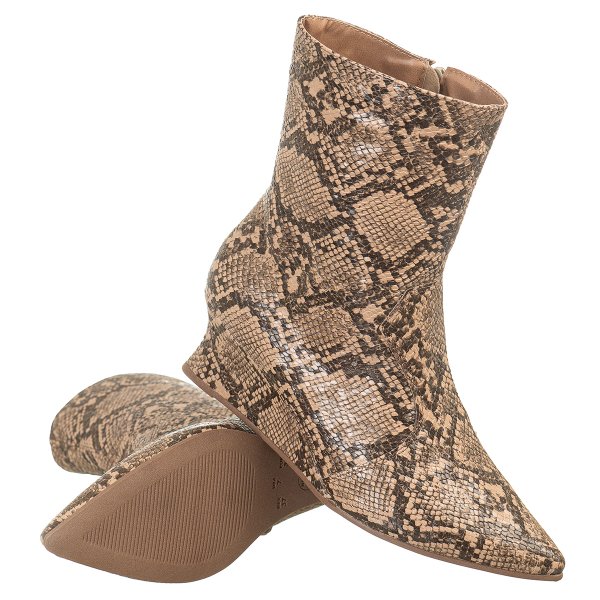 - 01 Par Bota Cano Baixo Salto Anabela Bico Fino Tendência