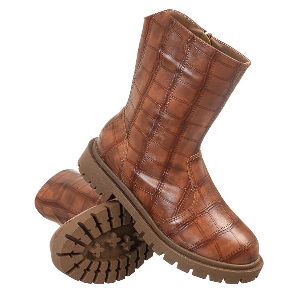 - Coturno Curto Feminino Textura Croco Tratorada