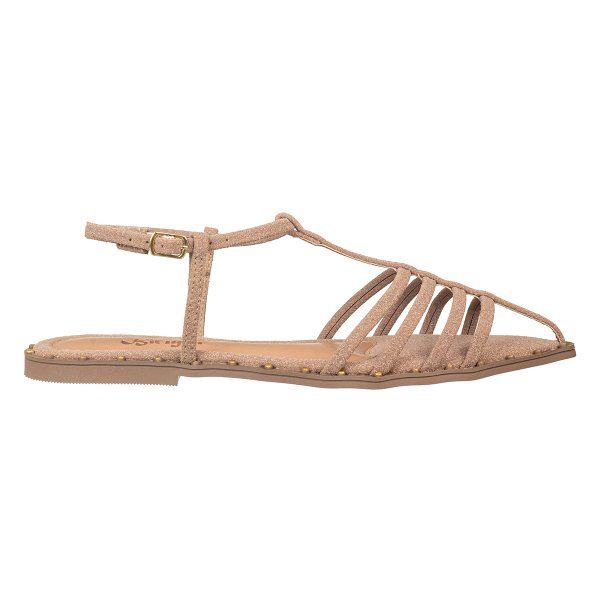 A sandália rasteira feminina bico folha é ideal para quem busca praticidade e estilo. Com tiras vazadas e fechamento em fivela lateral, oferece ajuste seguro e muito conforto para o dia a dia. Versátil, combina facilmente com vestidos, saias e calças, sendo perfeita para looks casuais e modernos.