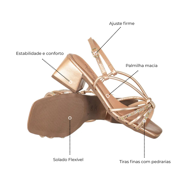 A sandália salto bloco é um clássico em todas nossas coleções, com detalhes que trazem muita elegância, unindo qualidade, beleza, e conforto.